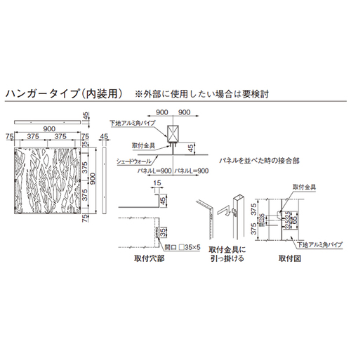 [色]ホワイト、ブラック[品番/呼称]Ni-06 [サイズ]W900mm×H900mm×D45mm×t2.0tmm [重量]4kg [材質]アルミ [仕上げ]粉体焼付塗装 購入に関する注意事項 ・パネルの色は、ブラックとホワイトの2色があります。どちらかご指示ください。 ・納期:受注生産となります。 特長 ・レーザーカットによる様々なデザインを施した、アートパネルです。 ・「光」と「陰影」をテーマに都市空間のあらゆるシーンを新たな表情で演出するア―トパネルです。 ・店舗ファサ―ド等内外装、天井、リノベーションと多様な用途でご使用いただけます。 ・LED照明等のライティング効果で、デザイン性がより一層に効果アップします。 ・パネルは回転フリーで、様々な組み合わせが表現可能です。 ・基本バリエーションは8種類ございます。その他オーダーにより更なるカタチを実現します。 ご注意 ・パネルに付いている取付ピースを、下地金物(アルミ角パイプなど)にビスで固定します。 ・下地金物(アルミ角パイプなど)、目地材は付属しておりません。別途ご用意ください。 ・アンカーピッチは通常600mmにて。強度が必要な場合は、強度計算のうえ設置してください。 ・ハンガータイプは、1枚あたり取付金具が4個付属しています。 ・デザイン、サイズ、色など別注にて製作可能です。お問い合わせください。 ・納まり図は、別途お問い合わせください。