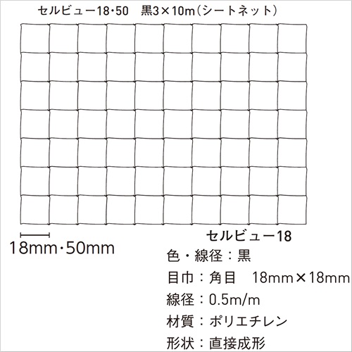 ・防鳥対策特殊ネットとしてご使用いただけます。・開口部全面での侵入を物理的に防護できますので効果的です。また、取付具は、取付け先を選ばず、確実に取付けできますので、頑固な鳩も撃退します。 ・磁気・薬品などと違い、人体及び鳥に対して安全です。また、対策する鳥類に対して、目幅を考慮していますのでからまりません。また、消防上の問題もクリアします。 ・特殊取付具 ペッタンコは、ボンドで取付けますので、快速、安全、無騒音で取付けできます。 ・基本的にどんな場所でも取付け可能です。コスト面も安心価格です。 ・極細で軽いネットです。設置しているのが殆ど目につかないので、圧迫感を解消し、美観を損ねません。 [色]黒 [サイズ]3m×10m [重量]390g [材質]ポリエチレン [ご注意] ・取付けには、オプション部品の特殊取付具 ペッタンコが必要です。 ・対策する鳥類に対して数種類の目幅のネットを取り揃えていますので、お問い合わせください。 ・納期:ご確認ください。 ・入数単位にて受注承ります。 ●備考:シートネット ●仕様:セルビュー18:色・線径:黒 目巾:角目 18mm×18mm 線径:0.5m/m 材質:ポリエチレン 形状:直接成形、セルビュー50:色・線径:黒 目巾:角目 50mm×50mm 線径:0.6m/m 材質:ポリエチレン 形状:直接成形 購入に関する注意事項