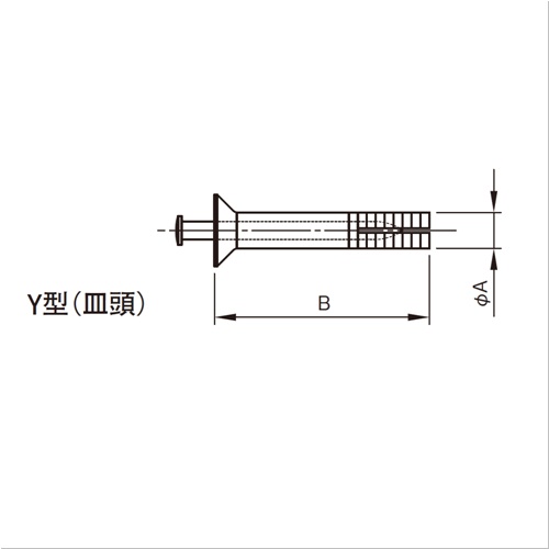 [品番/呼称]Y4-25[サイズ]外径A:4mm、首下全長B:25mm [材質]スチール [仕上げ]電気亜鉛メッキ [穿孔深さ]29mm [ドリル径]4.3mm [埋込み長さ]15mm [最大引抜強度]引抜:1.7kN、最大引抜強度 せん断:3.0kN 購入に関する注意事項 特長 ・プラグ施工より強度が必要な場所でお使いください。 ・化粧カバー付のブラケットなどビス頭が緩衝しそうな場合にご使用ください。 ・同サイズでステンレス製もご用意できます別途お問い合わせください(受注生産となります)。 ご注意 ・施工時には必ず安全帽及び防塵メガネ等を着用してください。 ・入数単位にて受注承ります。
