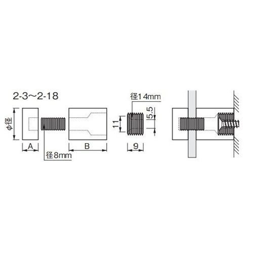 [材質]真鍮[仕上げ]クロームメッキ [サイズ]φ径:20、A:10、B:50mm [重量]123g [特徴] ・取付けが容易なタイプです。 ・専用座金付きです。 購入に関する注意事項 ご注意 ・SUS304タイプにはパッキン(1mm厚)が付いています。 ・取付けビスは付属しておりません。 ・取付け面の強度、表示面のサイズにより、表記している板厚を取付けできない場合がございます。