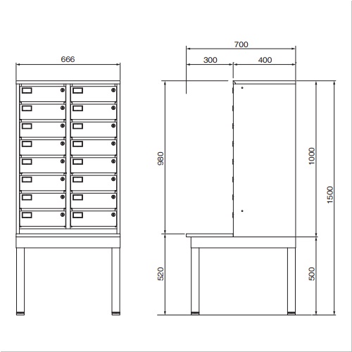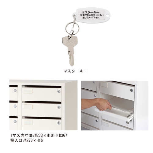 [色]シルキーホワイト[品番/呼称]SP208S [サイズ]1マス内寸法:W273mm×H101mm×D367mm 投入口:W273mm×H16mm [重量]61kg [付属部品]連結ビス付属 [材質]本体:スチール スタンド:スチール、木製天板(表面メラミン化粧板) [仕上げ]粉体焼付塗装 ●備考:16マス(2列8段)マスターキー1本、個別キー各マス2本付 購入に関する注意事項 受注生産となります。 特長 ・書類の受け渡しや配布業務、貴重品の一時預かり等、無人でも安全に効率的に受け渡しが可能なセキュリティボックスです。 ・マスターキー1本付きです。管理者はマスターキー1本で全ての管理ができます。 ・部屋のスペースや必要なマス数に合わせて横連結が可能です。 ・それぞれのマスの扉は下開きになっており、中の確認が容易に行えます。 ・投入口はW273×H16で、角2封筒がそのまま投入可能です。内容物は覗かれにくい構造です。 ・各自が個別キーで管理するので受け渡し業務が不要です。(個別キーは各マス毎に2本付) ・携帯電話やデジカメ等の一時預かりの際でも安心です。 ・9台(144マス)までは全てのマスの鍵違いが対応可能です。 ご注意 個別キーの鍵違数は150種類。個別キーはシリンダー毎の交換も可能です。詳しくは、お問い合わせください。