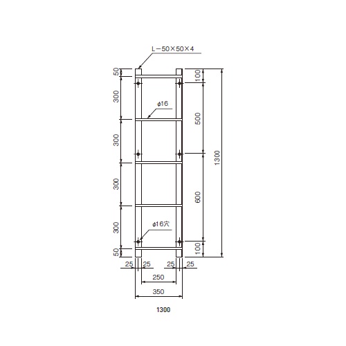 [サイズ]H:1300、W:350、D:150[本体重量]約13kg [材質]SUS304 [仕上げ]アングル:ヘアーライン、丸棒:ピーリング 購入に関する注意事項 【要別途送料】別途送料が必要な商品です。詳細は営業へお問合せください。代表画像を表示しています。 ご注意 ・ステンレス製の足掛け丸棒φ16は別注でローレット加工が可能です。φ19・φ22も製作可能です。 ・運搬諸経費は別途お問い合わせください。