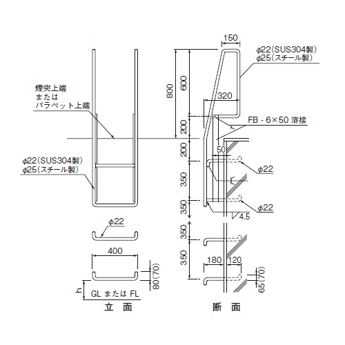 (溶融亜鉛メッキ) NTT塔屋タラップ 1350x400