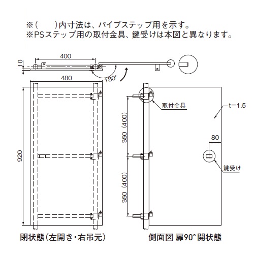 [サイズ]H920mm×W480mm[材質]SUS304 [仕上]ヘアーライン [仕様]右吊元 購入に関する注意事項 ・吊元により商品コードが異なりますのでご注意ください。 特長 ・ステップ最下部に取付けて、使用者を制限することができます。 ・施錠には、市販の吊長タイプの南京錠を別途ご用意ください。 ・取付金具は後付式ですので、既設のパイプステップに対応できます。 ご注意 ・左右吊元以外の点検用タラップは、図面をご提示の上お問い合わせください。
