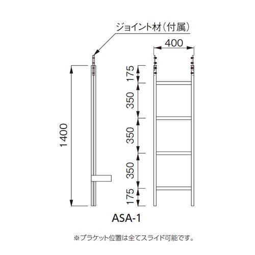 ・耐久性に優れたアルミ部材(アルマイト処理)を使用し、腐食しにくく、長期間の使用に耐えられます。・ブラケットが自由にスライドするため細かな調整が可能です。 ・最上部のパラペット側にステップを付けた事により仕上げ(笠木等)を踏みつける事なく昇降できます。 ・本体色はアルマイトシルバー(S)、ダークブロンズ(DB)、ステンカラー(ST)、ブラック(B)の4色をラインナップ。 購入に関する注意事項 ・規格品には、中間ジョイントはセットされていますが、取付ブラケットはセットされていません。別途ご注文ください。 ・代表画像です。 ご注意 ・施工する前に取付現場での入念な打合せの上、ブラケット取付部分の下地(壁)等の強度を充分確かめてから施工をお願い致します。 ・ブラケット取付面は付属のゴムパッキンを使用し、漏水防止の為コ ーキング等の充填の処置をお願い致します。 ・本製品の取り扱いに際して、壁面の強度、アンカー施工による本体の変形、使用対象外の設置による破損については責任を負いかねます。 ・本製品に当社規定以外の物は取付けしないでください。(アンテナ、煙突他)電気コード等を巻き付けないでください。 漏電、感電の恐れがあります。 ・最上部ブラケットの取付け位置は頭部の最上部から1200mm以内で取付けてください。 ・最下部ブラケットは、本体最下部から450mm以内に取付けてください。 ・タラップブラケット取付ピッチは1200mm以内で設置してください。 ・タラップ(長さ、幅、ステップピッチ)、取付ブラケット(D≦1200)の規格外寸法の製作が可能です。
