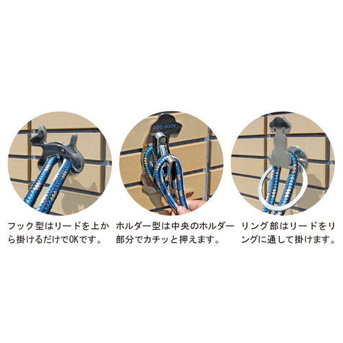 [サイズ]H115mm、W122mm、D65mm[材質]ロートアイアン [備考]全犬種対応 購入に関する注意事項 納期:ご確認ください。 特長 ・ワンタッチで、安全・安心にリード紐をキャッチします。 ・ペット共存住宅の玄関・ベランダ・室内や、ドッグカフェやペットショップの店内で、場所を選ばず簡単に設置が可能な壁掛けタイプのリードフックです。 ご注意 ・壁面にアンカーやビスでしっかりと設置してご使用ください。 ・商品には、ネジとカールプラグが同梱されています。