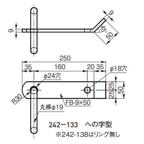 [本体重量]0.9kg[材質]SUS304 [仕上]研磨 [耐荷重]1000kgf [サイズ]φ24穴, 9×50×250 購入に関する注意事項