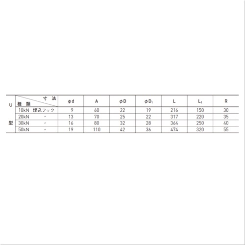 [本体重量]12500g[材質]SUS304鍛造品 [仕上]電解研磨 ●荷重表示板:材質:硬質塩化ビニール サイズ:300×400×2 【ご注意】荷重表示板はフックとセットになっています。運搬諸経費は別途お問い合わせください。80、100、150kN用も製作可能です。U型は、日本下水道事業団H-17(平成25年度版)仕様です。 購入に関する注意事項 備考 代表画像を表示しています。