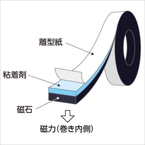 ・非着磁面に強力粘着剤を塗布したマグネットシートとテープです。・離型紙をはがし、 紙やプラスチックに簡単に貼ることができます。 ・テープは長尺物の用途に最適です。 [サイズ]厚み:1.5mm、幅:19mm、長さ:30m [重量]0.12kg [材質]フェライト [ご注意] ・強力アクリル系粘着剤を使用していますが被着体への粘着強度が適正であるかサンプル評価を行ってください。 ・貼り合わせ作業の際、 全面的に均一な加圧を行わないと部分的な浮き、 剥がれといったトラブルの原因になる恐れがあります。 ・マグタックテープは、30m1巻にて受注承ります。 購入に関する注意事項