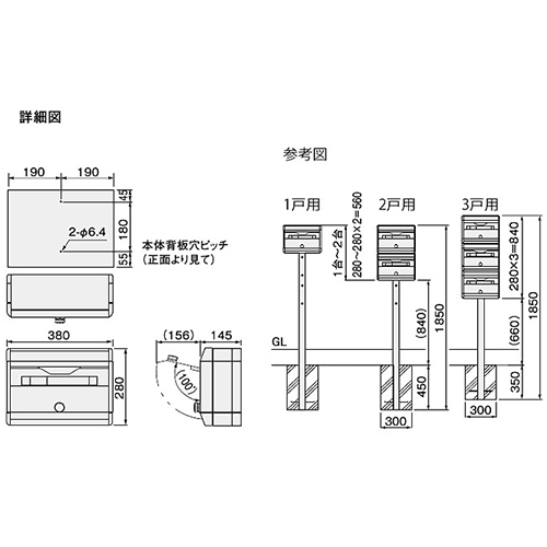ポスト W380×H280 前入前出/防滴タイプ [サイズ]H280mm×W380mm×D145mm [本体重量]2.7kg [材質]本体:SUS304 t=0.7 扉:SUS304 t=1.0 側板:PC樹脂 投入口:SUS304 t=1.0 [仕上]本体:No.4 扉・投入口:ヘアーライン仕上アクリル焼付塗装色:クリア [付属品]名札(小)1枚、名札(大)1枚、スノコ1個 購入に関する注意事項 特長 ・壁付、ポール設置可能な薄型の防滴タイプです。 ・扉に超小型トルクヒンジを採用。扉の閉まる衝撃音を低減。 ・側板には対候性、難燃性にすぐれたPC樹脂を採用。 ・KS-MB621Sは室番号と名札はセパレートタイプで名札のみの差替ができます。 ご注意 ・雨水が浸入しても郵便物が濡れにくい構造を採用しております。防水構造ではありませんので、強風雨や諸条件によっては郵便物が濡れることがあります。 ・積み上げてポールに取付ける場合は安全を考慮して3段までにしてください。 ・KS-MB621Sの名札交換は扉右側から行います。側面に壁がある場合は200mm以上離して設置してください。