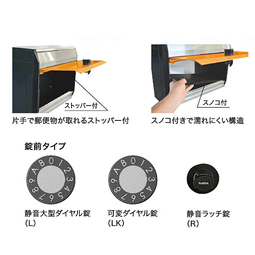 薄型ポスト KS-MB621S-L 静音大型ダイヤル錠