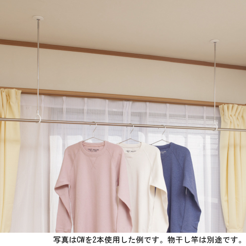 [サイズ]320、410の2段階調節[本体重量]250g [材質]SUS304・ZDC [荷重目安]8kgf/本 [色]ベージュ 購入に関する注意事項 ※代表を表示しています。 特長 ・ポールは簡単ワンタッチ脱着式で、使用しない時は外しておけます。(フック付) ・長さが3段階に調節可能です。 ・天井裏の野縁材、軽天材にネジ2本で取付け可能です。 ・グッドデザイン賞受賞/キッズデザイン賞受賞 ・ポールを2本まとめて掛けられるフックが付属しています。 ・荷重警告表示装置付きです。 ・天井を傷めない安心機構です。 ご注意 ・天井取付部に野縁等が入るように、設計段階より計画をしてください。 ・浴室にはご使用できません。