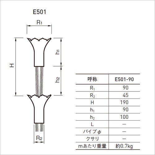 ・百合の花に似たカップとフックですっきりした洋風住宅向き商品です。 [品番/呼称]E501-90 [サイズ]L3000mm [重量]約0.7kg [材質]銅 [仕上げ]生地 購入に関する注意事項 ・Eタイプのみに吊棒が1本付属しています。 ・納期:お問い合わせください。
