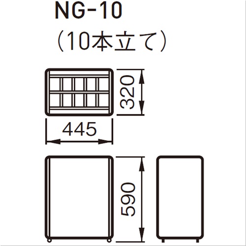 ・シックなデザインのパンチング仕様です。 [品番/呼称]NG-10 [サイズ]H590mm、W445mm、D320mm [重量]6.5kg [材質]ボディ:スチール、シート:再生ポリ塩ビ [仕上げ]メラミン焼付塗装 [ご注意] ・納期:ご確認ください。 ●収納本数:10本 購入に関する注意事項