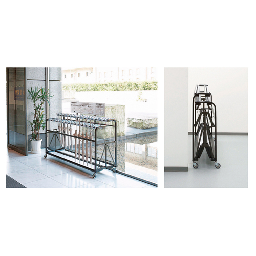 ・キーを使わずに片手でロックできるダイヤル錠式の傘立てです。・傘入れ、暗証番号の設定、施錠までをすべて片手で操作できます。荷物を持っていても使いやすいシステムです。 ・折りたたみ時は通常の半分の奥行きになり、安全に自立します。スリムになり、キャスター付きなので移動しやすく、バックヤードへの収納も楽です。 ・使用方法をイラストで分かりやすくした説明パネル付きです。(パネルは現場取付) [品番/呼称]D60 YA-85L-ID [サイズ]H1025mm、W1575mm、D565mm [重量]42kg [材質]フレーム:スチール、錠:AES [仕上げ]メラミン焼付塗装 [ご注意] ・納期:ご確認ください。 ●収納本数:60本 購入に関する注意事項