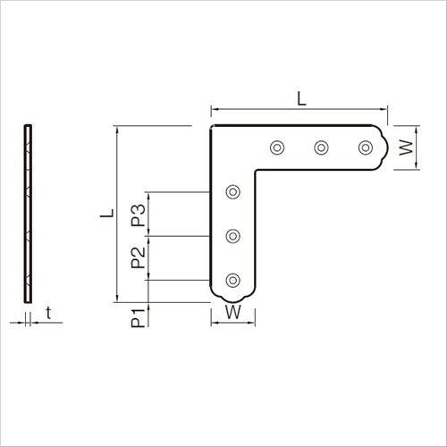 [サイズ]L:90mm、W:23mm、t:1.6mm、P1:13mm、P2:45mm[本体重量]45g [材質]スチール [仕上]電気亜鉛メッキ [穴径]4.0 [皿径]7.0 [穴数]4 購入に関する注意事項 特長 ・木材等の継ぎ目の補強に幅広くご利用願います。 ・コーナー部の補強に最適です。 ・ユニクロメッキ仕上のためサビにくい。 ・サイズも豊富に揃っております。