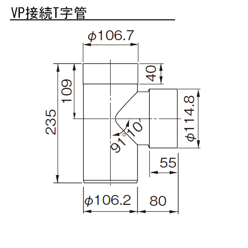 雨とい VP接続T字管 SG-458 主管105φ×0.8枝管115φ×0.8