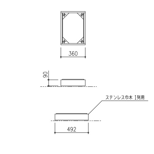 FX-UF用巾木です。[サイズ]360×90×492mm [材質]ステンレス 0.8t ヘアライン仕上 アジャスター付 高さ調整巾0〜15mm [重量]2.3kg 購入に関する注意事項 納期:受注生産となります。