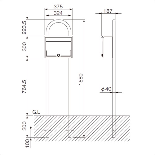 [品番/呼称]U-1[サイズ]H1580mm、W324mm、D40mm [重量]6.8kg [材質]亜鉛メッキ鋼板 [仕上げ]焼付塗装 [色]ブラック ・スタイルポストのオプション品です。 ご注意 ・スタイルポストは別売になります。