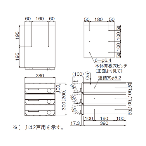 [サイズ]H200×W280×D407.3mm[本体重量]3.3kg [色]ステンレスヘアーライン [材質]本体:樹脂難燃グレード 扉:SUS304・ポリカーボネート 投入口:SUS304 [仕上]扉、投入口:ヘアーラインアクリル焼付塗装色:クリア [仕様]前入前出(防滴仕様) [錠前]静音大型ダイヤル錠 購入に関する注意事項 特長 ・前入前出タイプの「防滴仕様」です。 ・レターパックライトの投函が可能です。(最大投函可能サイズ:340×260×30mm) ・盗難配慮機構・急落防止機構付きです。 ご注意 ・MB5202PUは、雨水が浸入しても郵便物が濡れにくい構造を採用しております。防水構造ではありませんので、強風雨や諸条件によっては郵便物が濡れることがあります。 ・標準品はステンレスヘアーラインです。ブラック、ホワイト、シルバーは受注生産となります。ご希望の場合はご指示ください。 ・「防滴仕様」は、ステンレスヘアーライン・ブラック・シルバーのみです。
