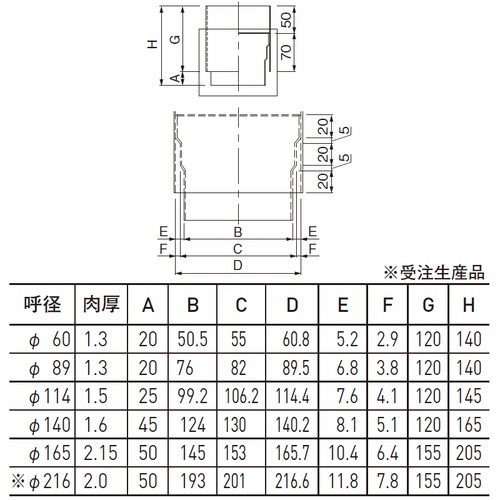 [品番/呼称]Φ114[サイズ]A25mm、B99.2mm、C106.2mm、D114.4mm、E7.6mm、F4.1mm、G120mm、H145mm [肉厚]1.5 購入に関する注意事項 ご注意 ・アルミ軒とい【アルノキ】6号・9号・12号・15号・もございますのでお問い合わせください。 ・ブラックの価格はおよそシルバーの2割増しです。
