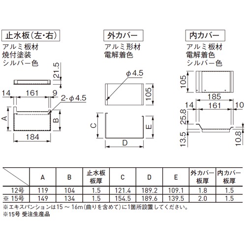 [カラー]ステンカラー[材質]アルミ板材(止水板/内カバー)アルミ形材(外カバー) 購入に関する注意事項 受注生産品です。