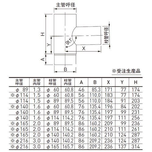 AL縦樋 Φ216 横引き異径T字管 (216X165) シルバー