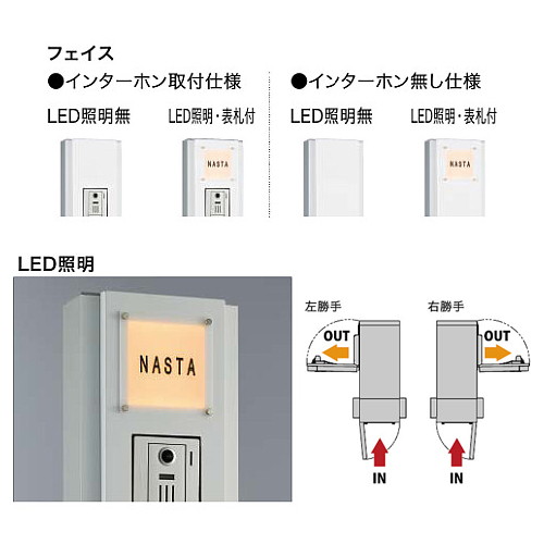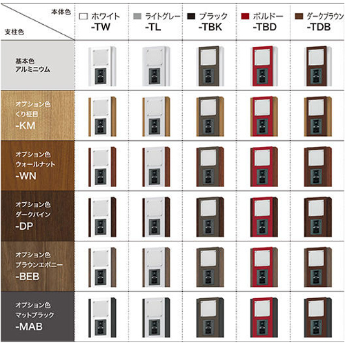門柱ユニット インターホン取付仕様<組み上げ出荷> [サイズ]H1793×W210×D400mm(施工後の高さ:1493mm) [仕上]支柱:アルマイト処理クリア塗装、支柱オプション色:くり柾目(オレフィンフィルム) 他4色(PVC+アクリルフィルム) [材質]支柱:アルミニウム [質量]17.2kg [付属品]非常開錠キー2本、ポスト用スノコ2枚1セット、宅配ボックス用スノコ2枚1セット、ネームシート(ブラックまたはライトグレー)1枚、CD管ジョイント、インターホンステー1個、取付ねじ4本 購入に関する注意事項 ・組み上げ出荷のため、受注生産品です。 ・代表画像です。(照明無しのフェイスはサブ画像でご参照ください) ・インターホン子機は別途お買い求めください。露出型インターホン子機対応。 特長 ・ポスト(前入横出/壁貫通・防滴タイプ/左右勝手)KS-MAB3を組み込んだ〈門柱ユニット〉です。 ・メール便や大型の郵便物でもスムーズに受け取れます。 ・独自開発の盗難配慮機構「ナスタガード」(意匠登録済) ・受け取るだけでなく荷物の発送もできる宅配ボックス。 ・2047通りの番号設定ができるワンタイムパスワード式のプッシュボタン錠(緊急時には付属の鍵を使って解錠可能) ・解錠・施錠のスムーズさをつい今日した専用大型ダイヤル錠。 ご注意 ・宅配ボックスは前入前出(右勝手)のみとなります。 ・「受取可能な最大サイズ」とは、宅配ボックスで受取・取出が可能な最大寸法です。最大サイズを超える荷物の受取はできません。目安寸法につき、梱包の状態によっては受け取れない場合もございます。 ・雨水が浸入しても郵便物や荷物が濡れにくい防滴構造を採用しております。防水構造ではありませんので、強風雨や諸条件によっては郵便物や荷物が濡れることがあります。