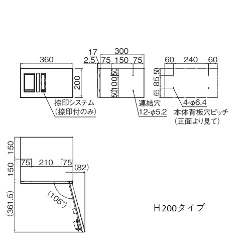 プチ宅がグレードアップして登場・さらに使いやすくなったプッシュ錠 ・IPX4の防水規格 ・スマートな捺印システム ・機械式/前入前出タイプ [色]ステンレスヘアーライン [材質]本体:ステンレス t=0.8mm、扉:ステンレス t=1.0mm [仕上]本体No.4仕上、扉ヘアーライン仕上アクリル焼付塗装、色:クリア [サイズ]H200×W360×D317mm [受取可能な荷物の最大サイズ]H140×W270×D245mm [錠前]プッシュボタン錠 [重量]4.2kg ※捺印付き 購入の際のご注意 代表画像を表示しています ご注意 ・荷物の受取りと発送が可能な宅配ボックスです(前入前出/機械式タイプ) ・防水構造(IPX4)を採用しいています。完全防水ではありませんので暴風雨や諸条件によっては荷物が漏れることがあります。 ・捺印付仕様には01〜10のボックスナンバーが同封されています。それ以外のナンバーは別途製作になります。 ・据置設置の場合はオプション(別売)で専用巾木もございます。