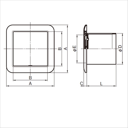 角型クーラーキャップは、キャップ部がマイナスドライバーなどで取り外しができます。配管カバーに対応できる構造です。 [色]クールホワイト [サイズ]A:114、B:82、C:7、D:74、E:66、L:70 [本体重量]55g [材質]ASA ●適用パイプ:SU 75 75× 80 購入に関する注意事項