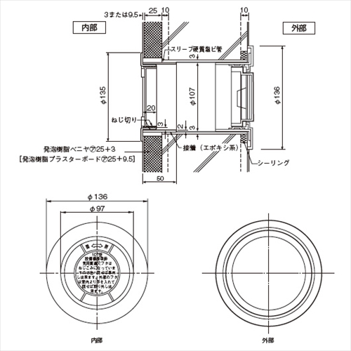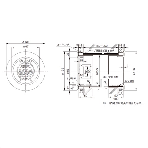 [サイズ]筒外径:φ106.5、外径:φ135[本体重量]105g [材質]ASA [色]ホワイトグレー ●適用パイプ:VU100 107×114 購入に関する注意事項