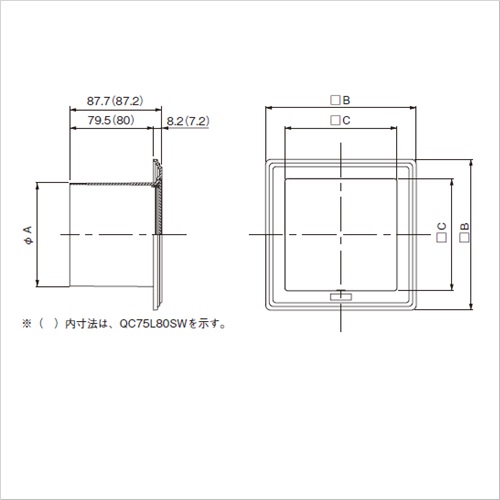 スマートなフォルムを追求したデザインで、本ページ下の角型レジスターと意匠面で統一性が図れます。壁からの出寸法(8mm)をできるだけ少なくし、フラット感を強調し、また、エッヂに段を付けることにより、アクセントとシャープさを演出しました。 前面パネル(蓋)の取外しは、マイナスドライバー1本で可能です。 断熱材等による躯体と室内パネルとの隙間を考慮し、本体スリーブ長を80mmと長くしました。 [サイズ]A:98.7、B:143.5、C:107 [本体重量]103.7g [材質]ABS [色]ホワイトグレー 購入に関する注意事項