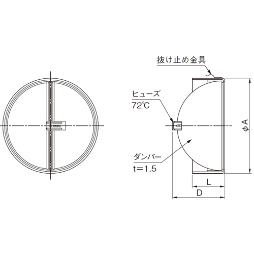 特定防火設備該当品です。[サイズ]A:Ф147、D:76、L:50 [本体重量]420g [材質]SUS304 [適用パイプ]エース150 152×160 購入に関する注意事項