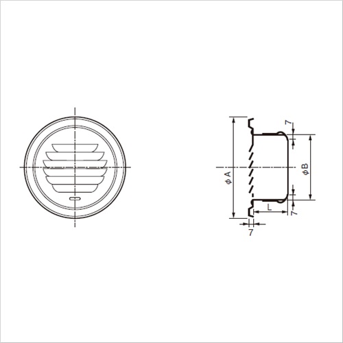 [サイズ]A205mm、B145mm、L53mm[本体重量]120g [材質]アルミ [仕上]アルマイトシルバー ●仕様:網なし ●適用パイプ:エース150 152×160 ●有効換気面積:58.6平方センチメートル 購入に関する注意事項
