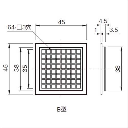 [サイズ]内:38角、外:45角[本体重量]2g [材質]ABS [有効換気面積]5.76平方センチメートル 購入に関する注意事項 ご注意 ・機構(公団)住宅AI-901、公共住宅I-811該当品はA型のみです。