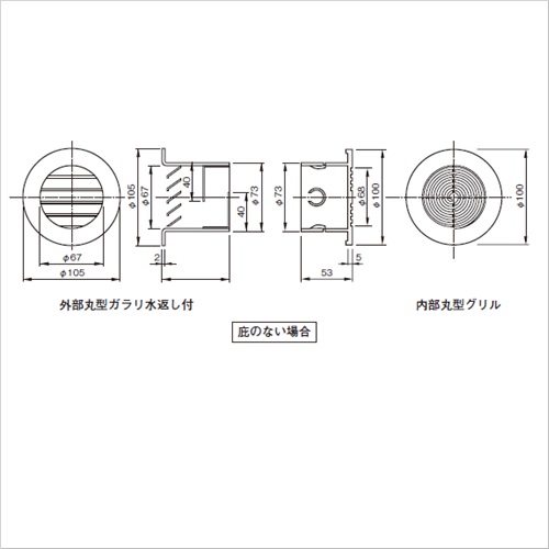 [色]ホワイトグレー[サイズ]Ф73 [本体重量]50g [材質]ABS [備考]庇のない・ある場合 [有効換気面積]17.3平方センチメートル 購入に関する注意事項