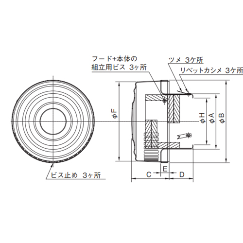 ・フードを取り外し、 中の防音材付カセットの交換が可能です。・防火ダンパー:公称作動温度72℃ [サイズ(mm)]A:95、B:144、C:72、D:35、E:20、F:139、H:82 [材質]アルミ [色]シルバー [適用パイプ]SU100]100×106 [有効換気面積]19.7cm2 [重量]280g ●仕様:網付 購入に関する注意事項 画像は代表画像です。