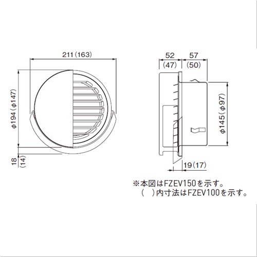 [色]ヘアーライン(HLP)[サイズ]表記による [重量]299g [材質]SUS304 [仕上げ]カチオン電着下地塗装 [適用パイプ]SU100 100×106 [相当開口面積]36.94平方センチメートル 購入に関する注意事項 ※代表を表示しています。 特長 ・フードが丸く、フラットですっきりした外観です。 ・通気量を確保しつつ、耐外風や雨水浸入、外壁面の汚れの減少など優れた性能を発揮します。 ・強制換気用としてご使用いただけます。 ・同じ外観で、強制換気用を選びたい場合は、こちらをご使用ください。 ・ガラリの羽根は下向きです。 ・水板し板は付いておりません。 ご注意 ・FD付の機種は特定防火設備該当品です。 ・防火ダンパー:公称作動温度72℃(120℃も対応可能です。お問い合わせください) ・別注色も製作可能です。