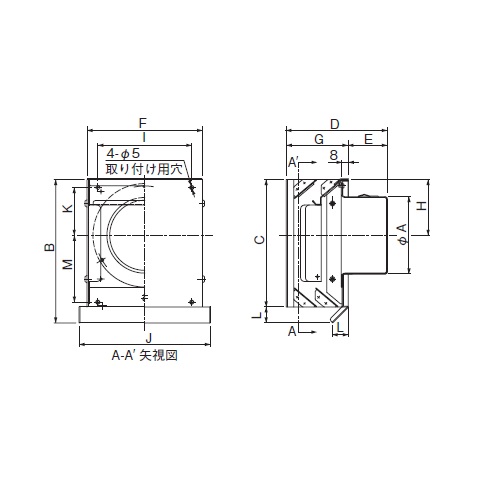 ・止水性能が大変優れています。・外風の逆流が非常に少なく安定的な換気ができるため、省エネの一環になります。 ・網付きです。 [品番/呼称]DS-100TEND-C [サイズ]A:97、B:180、C:160、D:127、E:49、F:145、G:78、H:70、I:118、J:165、K:84 [材質]ステンレス、カチオン電着+シルバー焼付塗装 [仕様]FD付 購入に関する注意事項 ・3メッシュ、5メッシュをご希望の場合はお問合せください。 ご注意 ・塩害地区にご使用の際は別途特別塗装を推奨しております。詳しくはお問い合わせください。 ・FD付、防虫網付商品はメンテナンスができる場所にて使用してください。 ・FD付の100・150は特定防火設備該当品です。 ・防火ダンパー:公称作動温度72℃が標準です。120℃をお求めの場合はお問い合わせください。 ・網付の場合は、標準で10メッシュです。 ・別注にて色指定による塗装も対応できます。ご指示がない場合はツヤ有りとなります。 ・125、175、225、300サイズも製作可能です。お問い合わせください。