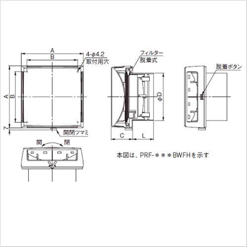 角型レジスター フラットカバー PRF100BWFH 不織布フィルター付