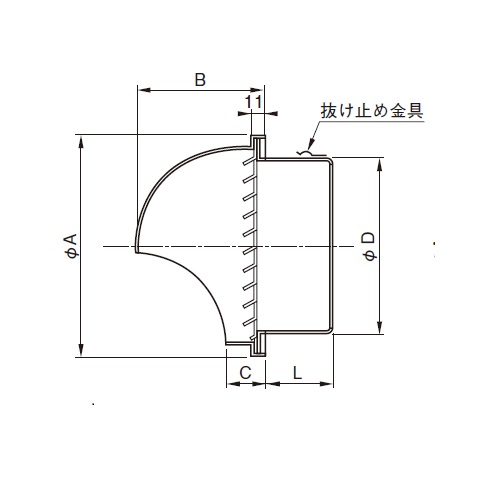 [サイズ]A:110、B:67、C:22、D:47、L:32 [重量]160g [材質]SUS304 [仕上げ]カチオン電着塗装後、ポリエステル焼付塗装(シルバー) [仕様]網付 [適用パイプ]SU 50 50×54 [有効換気面積(給気)]14.1平方センチメートル 購入に関する注意事項 ・塗装代は別途加算となりますのでご注意ください。 ・指定色は日本塗料工業会の色番でご指定ください。 ・防虫網付も製作可能です。(SUS10メッシュ)