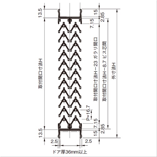 取付けは呼び込み方式内側ビス止めです。2枚1組構造のため厚さ調整可能です。 [本体重量]2600g [材質]アルミ [仕上]黒色電解発色 [有効換気面積(網なし)]545平方センチメートル 購入に関する注意事項 2枚1組です。 ご注意 代表画像を表示しています。