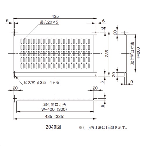 アルミ軒天換気グリル 2040 網付き