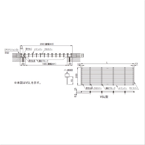 [材質]SUS304[サイズ]W200×L900 [ピッチ]15 [開口率]41% [本体重量]3.2kg 購入に関する注意事項 特長 ・ステンレス製グレーチングタイプです。 ・取付がタッピンねじの使用で簡単にできます。 ・床仕上材の厚さが15mmおよび18mmに対応できます。 ・屋内歩行用です。 ・VSL型3.5kN/平方メートル、VST型5.0kN/平方メートル ご注意 蓋をつなげて使用する場合は、必ず継目を根太で受けてください。