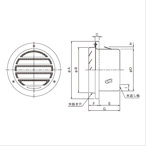 [サイズ]A:133、B:104.2、C:9、D:97、E:47、F:24、G:71、H:5、I:15[重量]153g [材質]SUS304 [仕上げ]粉体塗装+アクリル焼付塗装(メタリックグレー色) [仕様]網付 [アミ付]10メッシュ [適用パイプ]SU100 100×106 [有効開口面積]26.5平方センチメートル 購入に関する注意事項 ・従来の粉体塗装+アクリル焼付塗装のものが品切れ後、カチオン電着塗装+アクリル焼付塗装のもの(311-344)に切り替えとなります。お問い合わせください。 ご注意 ・取付ダクトは、ねじれ・変形のないこと、また壁仕上り面まで施工されていることを予めご確認ください。 ・本製品を取り付ける前に、必ずダクト内の清掃を行ってください。 ・防水処理に使用するシーリング剤は、施工後の経年劣化によるひび割れなどで隙間を生じさせないためにも、酸化性のものを避け柔軟性を保つものをご使用ください。