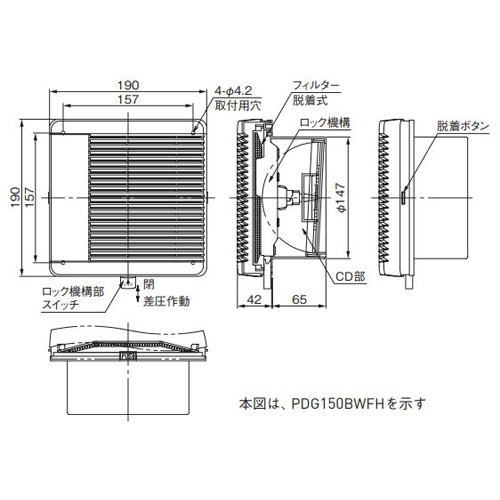 差圧式給気口ガラリカバー PDG150BWF メッシュフィルター付