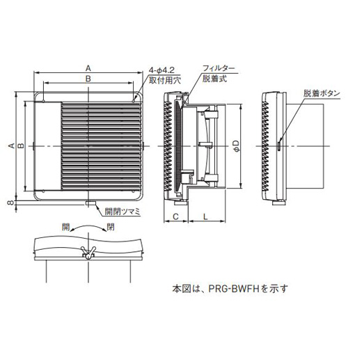 [材質]ASA[色]クールホワイト [サイズ]A190、B157、C42、D148、L65mm [適用パイプ内径]エース150 152×160mm [有効換気面積(給気)]46.0cm2 [重量]415g 購入に関する注意事項 特長 ・製品下部のツマミを回すとレジスターが開閉できます。 ・捕集効率60%(質量法JIS15種)の不織布フィルターにより、外気に含まれる塵やホコリ、花粉などの室内への侵入を防ぎます。(水洗い3〜5回可) ・カバー左右に設けた脱着ボタンを押しながら手前に引くと容易にカバーが取外せるため、フィルターの交換をはじめメンテナンスが楽に行えます。 ・室内インテリアとの調和がはかれる空気の流れをイメージしたガラリカバーです。 ご注意 カバー着脱のため25mm以上のスペースを確保してください。