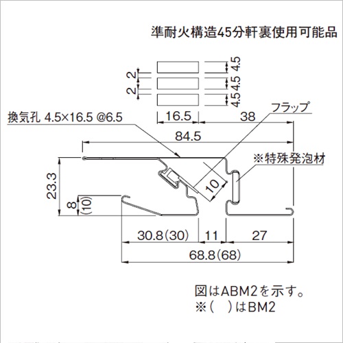 [色]ブラウン(BR)[品番/呼称]BM2-ER BR [重量]17g [材質]塗装溶融亜鉛メッキ鋼板 [軒天材厚]12mm対応品 購入に関する注意事項 特長 ・住宅など建築物の小屋裏の換気に使用できます。 ・換気性能は、従来品に比べ、量的にも、質的にも優れています。 -防火通気見切縁は、従来の部分的換気方式と異なり、建物全周で理想的な換気ができます。 ・火災発生時、特殊発泡材により換気通路が遮断され、確実に炎の侵入を防ぎます。 -特殊発泡材は約180℃で発泡を開始します。 ・止水用のフラップをセットしたので、台風など暴風雨時、雨水などの浸入を防ぎます。 -フラップは風速10m/sで作動を始めます。 ・防火性能も、国土交通大臣の準耐火認定を受ける等、万全を期しています。 -防火通気見切縁は、外部での火災発生時、特殊発泡材により、換気通路が遮断されます。 従来のダンパ-方式(機械式)に比べ、長時間、確実に防火性能が発揮されます。 -防火通気見切縁は、国土交通大臣の準耐火認定を受けております。 ご注意 ・換気面積は1mあたり100センチ平方メートルです。(本体寸法は1820mmとなります。) ・塩害地及び発錆のおそれのある地域ではBM2S-182□-J、ABM2S-182□-J(塩害地仕様)をご使用ください。 ・準耐火認定が必要な場合は、認定書記載仕様に合致する材料(軒天井板・下地等)・施工方法を守ってご使用ください。 ・ブラック色もございます。お問い合わせください。