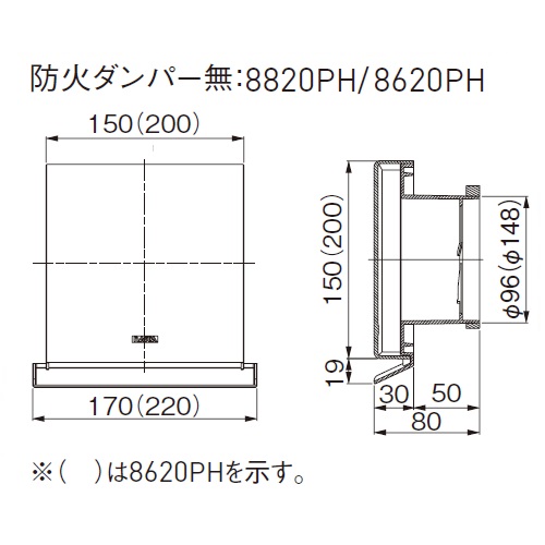 樹脂製スリムフード KS-8620PH-CG Φ150 シャンパングレー ダンパー無し