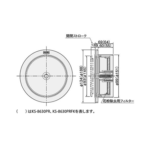 [サイズ]188x188x64mm[材質]ASA [色]シルバーグレー [適用パイプ]エース150 152×160 購入に関する注意事項 特長 ・プッシュ部分を軽く押すだけ、開閉自在のワンプッシュ方式です。 ・アレルフィルター付(20μm花粉90%除去)は、花粉・粉塵やほこりの侵入を大幅に減少させます。 ・前面パネルが取り外せますので、フィルターや防虫網など内部の清掃が容易です。 ・PR-SGは防虫網付(ASA樹脂成形網)です。(アレルフィルターなし) ご注意 ・フィルターが汚れたら定期的に水洗いしてください。 ・傷んだり汚れが落ちない時は交換してください。(別売り品)
